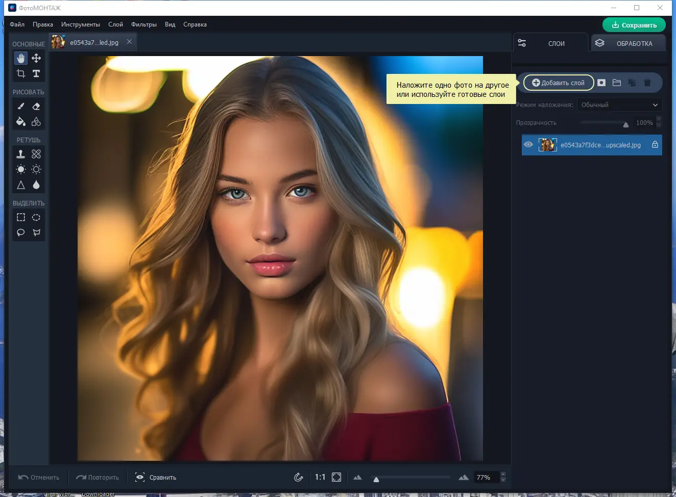 Работа со слоями в ФотоМОНТАЖ проста и интуитивна, что позволяет быстро освоить процесс редактирования даже без опыта в графических редакторах.