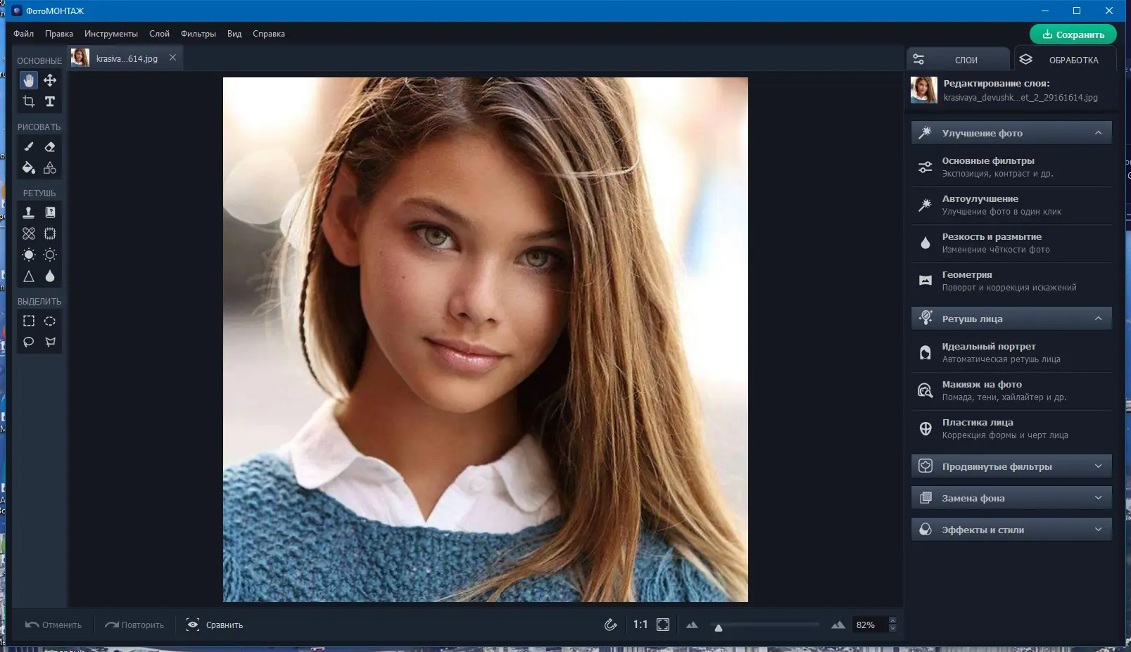 ФотоМОНТАЖ — это мощный графический редактор с поддержкой слоёв, предназначенный для создания реалистичных фотомонтажей, ретуши лиц и улучшения качества изображений. Программа предлагает инструменты профессионального уровня: от точечной коррекции до автоматической цветокоррекции, а также более 180 готовых объектов и текстур. Работа со слоями, масками и фильтрами позволяет добиваться впечатляющих результатов даже новичкам.