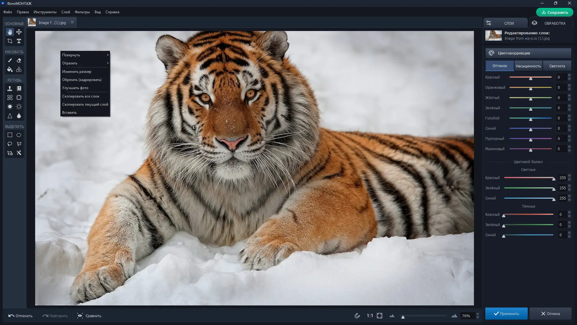 ФотоМОНТАЖ — это многофункциональный редактор фото с поддержкой слоёв, который позволяет выполнять профессиональный фотомонтаж, ретушь лиц и цветокоррекцию. Программа предлагает широкий набор инструментов для создания реалистичных композиций, замены фона и улучшения качества изображений. Благодаря интуитивному интерфейсу и встроенным эффектам, она подходит как для новичков, так и для опытных пользователей.