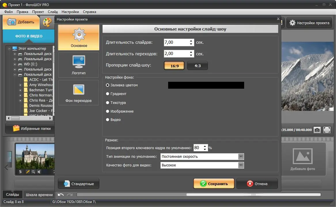 Работа с ФотоШОУ