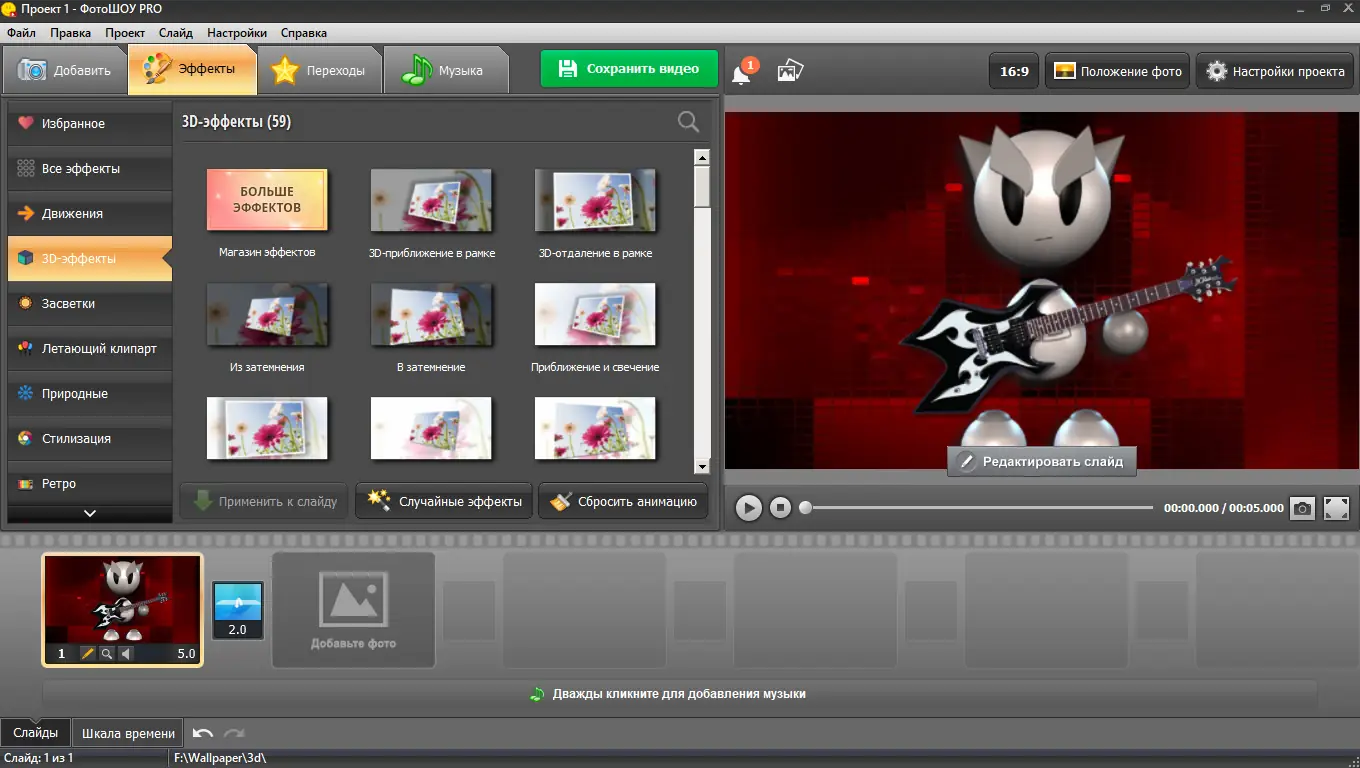 - Обширная библиотека анимационных эффектов и 3D-переходов, обеспечивающих высокое качество визуального оформления