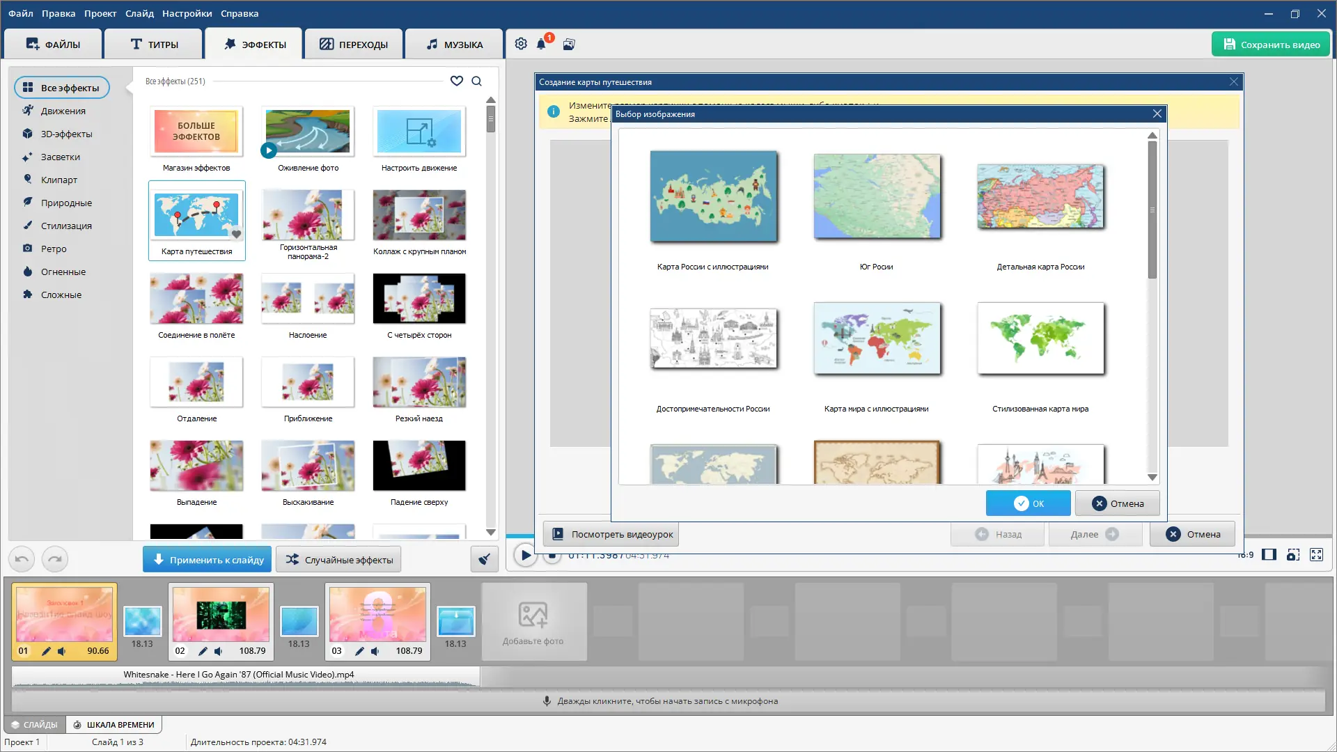 - Большое количество встроенных шаблонов и эффектов, включая 3D-анимацию
