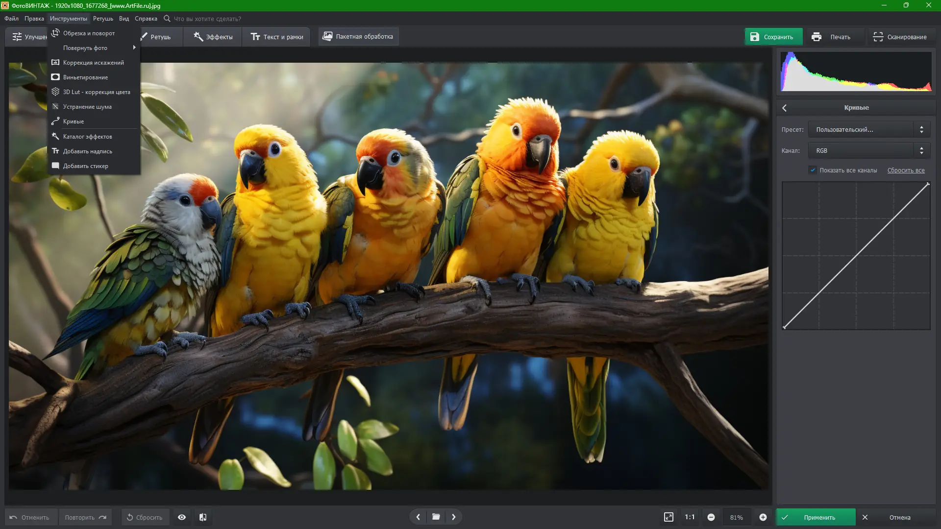 - Применение художественных фильтров и винтажных эффектов