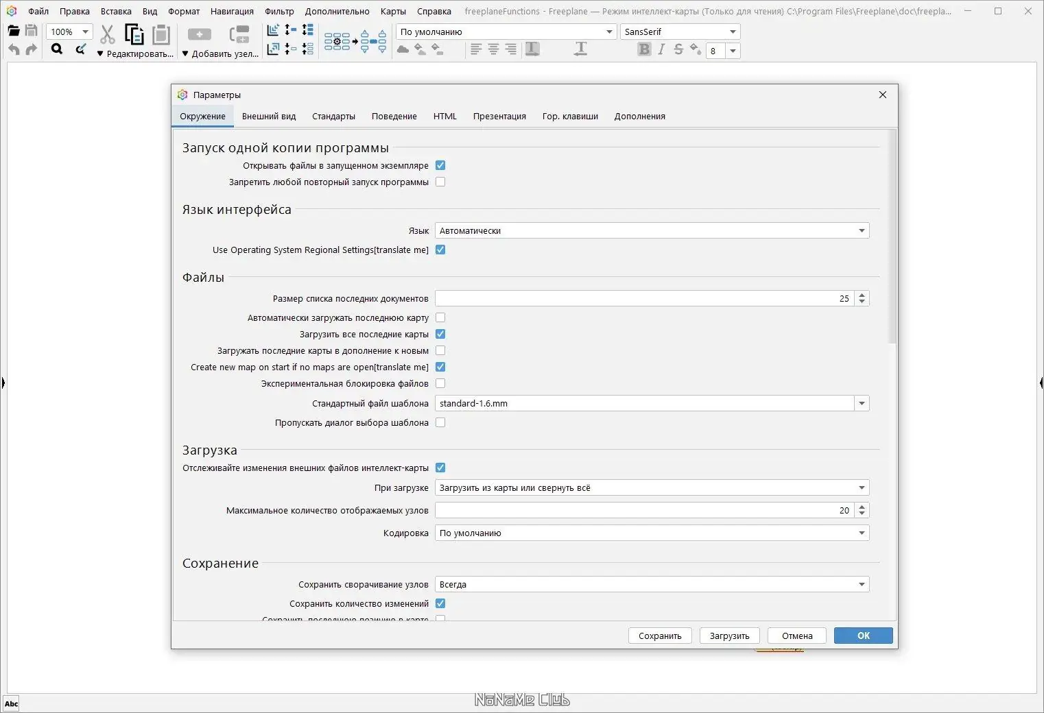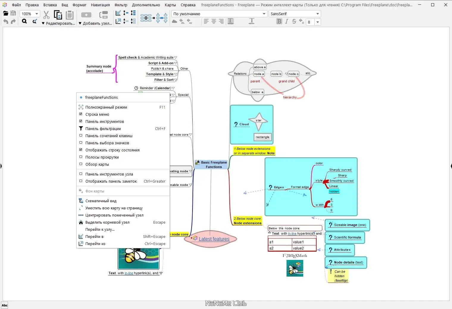 Работа с Freeplane