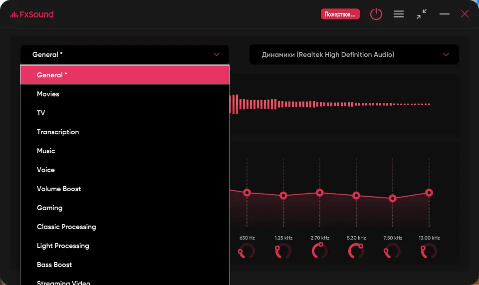 - Наличие предустановленных профилей под разные типы контента: музыка, игры, стриминг.
