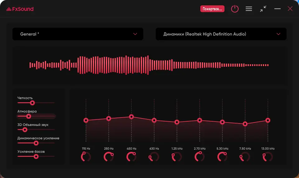 FxSound — программное обеспечение для улучшения аудио на компьютере, работающее в реальном времени и подходящее для прослушивания музыки, просмотра видео и игр. Приложение корректирует звуковую составляющую без искажений, усиливая детализацию, глубину и пространственное восприятие звука.