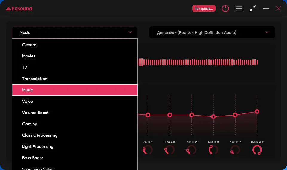 FxSound — это аудиоусилитель, разработанный для улучшения качества воспроизводимого звука на персональном компьютере. Прежнее название DFX Audio Enhancer отражает её основную функцию — усиление и детализация аудиосигнала через программную обработку. В отличие от встроенных звуковых эффектов, FxSound использует более сложные методы коррекции, включая динамическую компрессию, расширение стереобазы и коррекцию частотного диапазона. Программа интегрируется на уровне системы и не требует изменения настроек в каждом отдельном приложении. Она поддерживает широкий спектр аудиовыходов, включая встроенные динамики, наушники и многоканальные акустические системы.