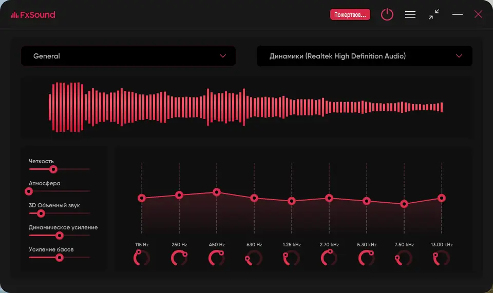 FxSound — мощное аудио-приложение, предназначенное для улучшения качества звука в режиме реального времени на персональном компьютере. Программа корректирует аудиосигнал независимо от источника, будь то музыка, видео, игры или стримы. Благодаря продвинутым алгоритмам обработки, звучание становится более насыщенным, чётким и глубоким.