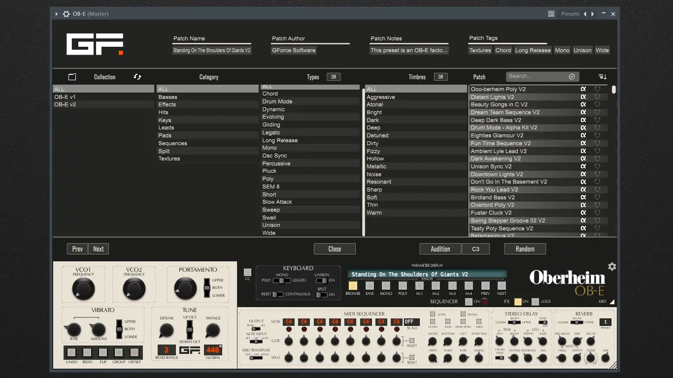 GForce Software Oberheim OB-E — программный синтезатор, воссоздающий звучание легендарного аналогового 8-голосого инструмента Oberheim. Это не просто эмуляция, а глубокая интерпретация, одобренная лично Томом Оберхаймом. Программа предлагает уникальную октафоническую архитектуру, точную передачу тембра SEM-модулей и современные улучшения, расширяющие творческие возможности. Сочетание винтажной атмосферы и цифровых возможностей делает OB-E мощным инструментом для композиторов, продюсеров и звукорежиссёров. Аппаратная оптимизация и поддержка новых платформ обеспечивают стабильную работу и высокое качество звука.