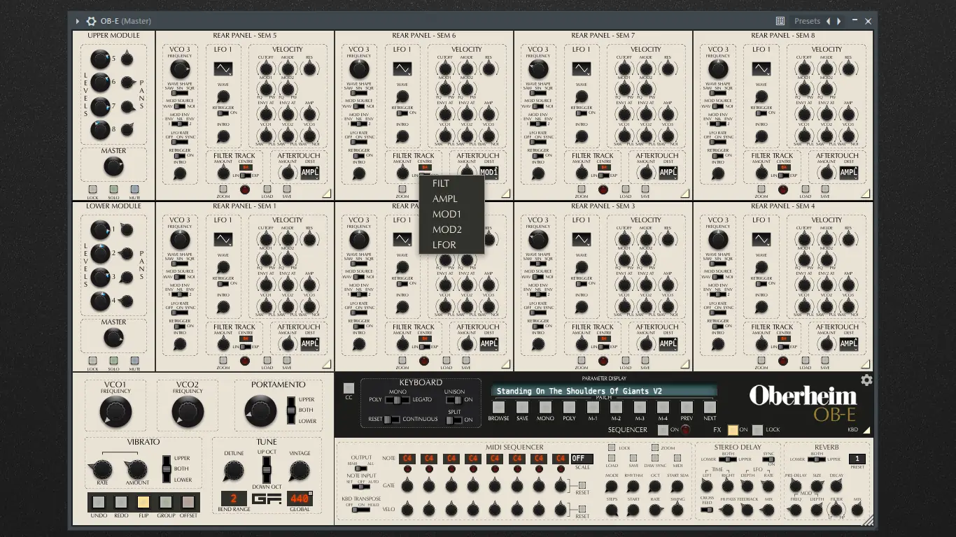 Программа представляет собой виртуальный аналоговый синтезатор, построенный на основе архитектуры Synthesizer Expander Module (SEM), лежавшей в основе оригинального Oberheim 8-Voice. Каждый из восьми голосов — это независимый SEM с двумя генераторами формы сигнала, огибающими, LFO и фирменным многорежимным фильтром. Это позволяет достичь насыщенного, живого звучания, характерного для аналоговых синтезаторов 1970-х, но с возможностями современного программного обеспечения. Архитектура обеспечивает полную полифонию, где каждый голос работает автономно, что особенно ценно при создании сложных текстур и пэдов.