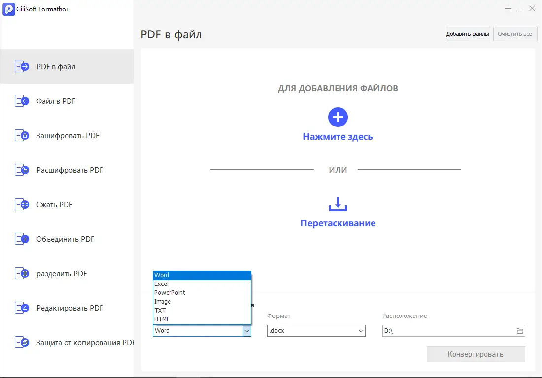 GiliSoft Formathor — это многофункциональный инструмент для работы с PDF-документами, позволяющий конвертировать, редактировать, объединять и защищать файлы. Программа поддерживает пакетную обработку, сохраняя исходное форматирование при преобразовании в Word, Excel, HTML и другие форматы.