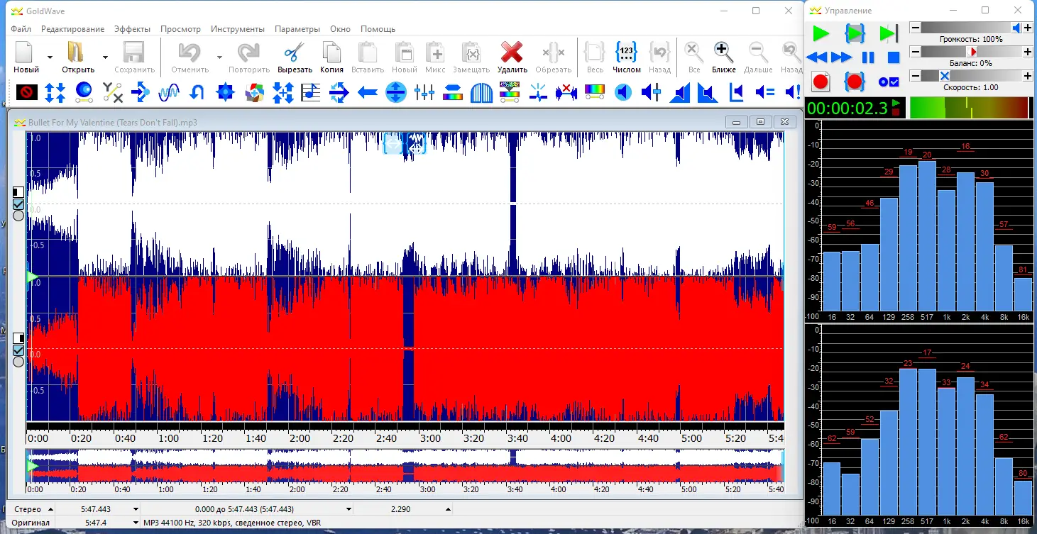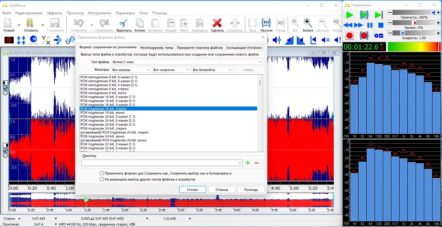 GoldWave — это мощный audio editor, предназначенный для профессиональной обработки звуковых файлов, включая редактирование, конвертацию, восстановление и запись аудио в различных форматах. Программа поддерживает высокое качество воспроизведения и обработки до 24-бит/192 кГц, обеспечивая точность и чистоту звука. Она эффективно справляется с большими файлами, включая те, размер которых превышает 4 Гб, благодаря неразрушающему редактированию и оптимизированному доступу к данным на диске или в оперативной памяти.