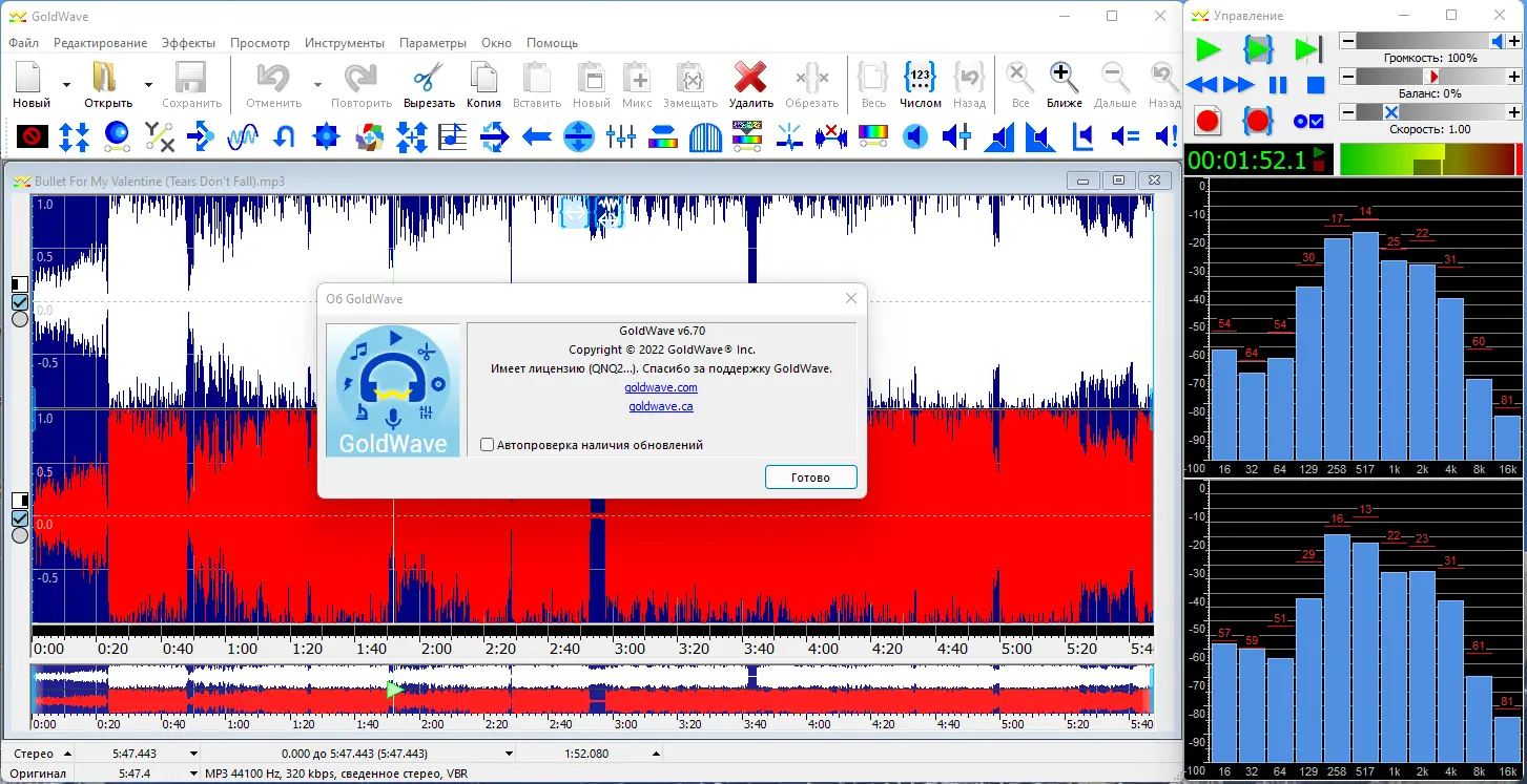 Программа предлагает широкий функционал при стабильной работе даже на системах со средними характеристиками. Высокая скорость обработки, поддержка большого количества форматов и возможность работы с гигантскими файлами делают GoldWave лидером в своей нише. Многие функции, такие как шумоподавление, восстановление старых записей и конвертация, реализованы на профессиональном уровне. При этом интерфейс остаётся понятным как для новичков, так и для опытных пользователей. Программа активно развивается, о чём свидетельствует выход новой версии 6.70 с улучшенной совместимостью и производительностью.