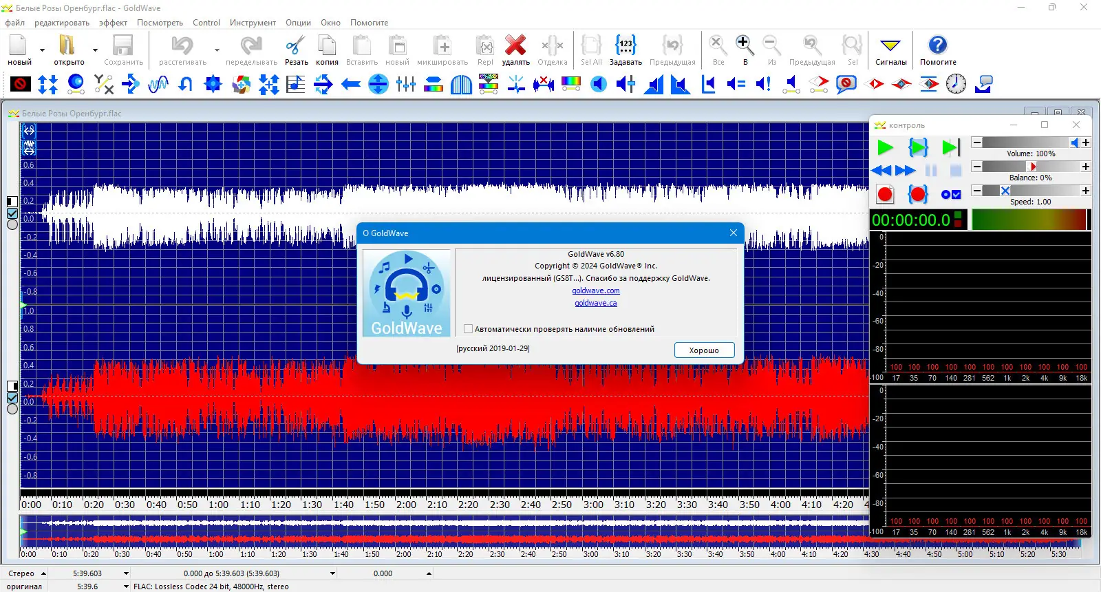 GoldWave представляет собой универсальное приложение для работы с аудио, сочетающее в себе функции проигрывателя, редактора и конвертера. Программа ориентирована на точную обработку звуковых данных с минимальными затратами времени и ресурсов. Она поддерживает многоканальные файлы, работает с высоким разрешением до 24 бит и частотой дискретизации 192 кГц, что делает её пригодной для профессионального использования. Интерфейс интуитивно понятен, а наличие русского языка позволяет комфортно работать пользователям из стран СНГ. Работа с проектами осуществляется в реальном времени, с возможностью быстрого доступа к основным функциям через настраиваемые панели.