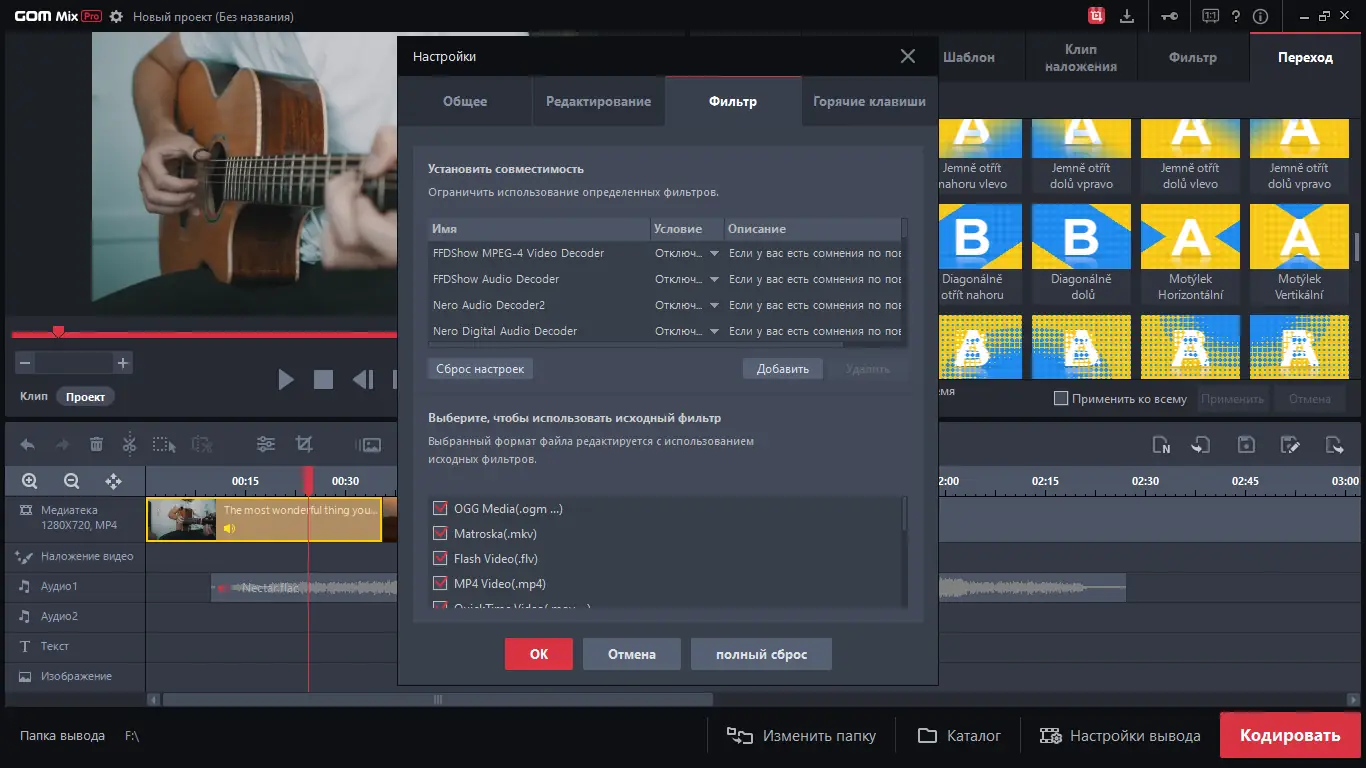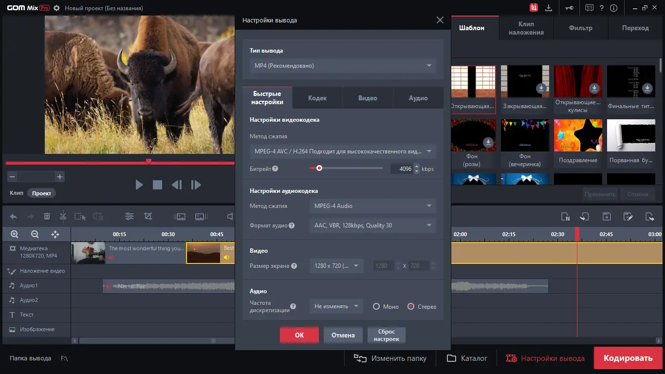 GOM Mix Pro предлагает комплексное решение для редактирования видео с интуитивно понятным интерфейсом и широким набором инструментов. Программа позволяет обрабатывать файлы различных видеоформатов, включая популярные MP4, AVI, MKV, MOV и другие, а также поддерживает изображения и аудиофайлы для комплексного монтажа. Работа с медиа осуществляется через удобную временную шкалу, где можно легко выделять фрагменты, обрезать, вставлять и перемещать элементы. Каждое действие выполняется в несколько кликов, что делает процесс редактирования максимально быстрым и комфортным.