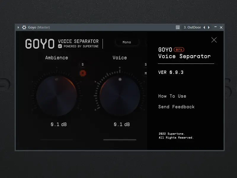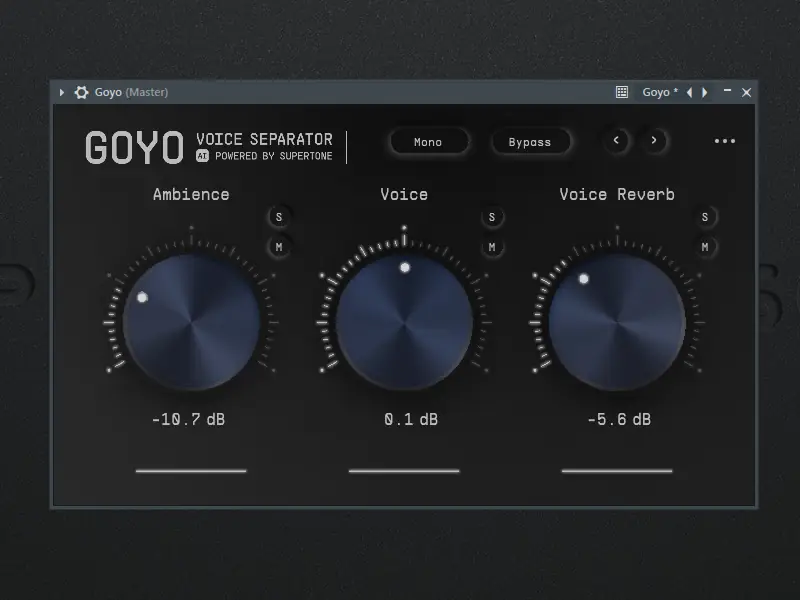 GOYO — это универсальный плагин, предназначенный для качественной обработки аудио за счёт разделения звуковой дорожки на три составляющие: голос, фоновые шумы и реверберацию. Решение подходит для работы в студиях, при записи подкастов, видеоконтента и онлайн-встреч.