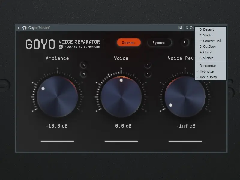 GOYO представляет собой программный инструмент, объединяющий функции шумоподавления, удаления реверберации и выделения вокала. Архитектура обработки основана на разделении аудиопотока на три независимых канала, что позволяет тонко настраивать каждый элемент звука. Такой подход особенно полезен при работе с записями, сделанными в неидеальных акустических условиях. Программа интегрируется в аудиоредакторы и обеспечивает высокую точность анализа сигнала. Благодаря продуманному алгоритму, она эффективно справляется с посторонними шумами, сохраняя при этом естественность голоса.