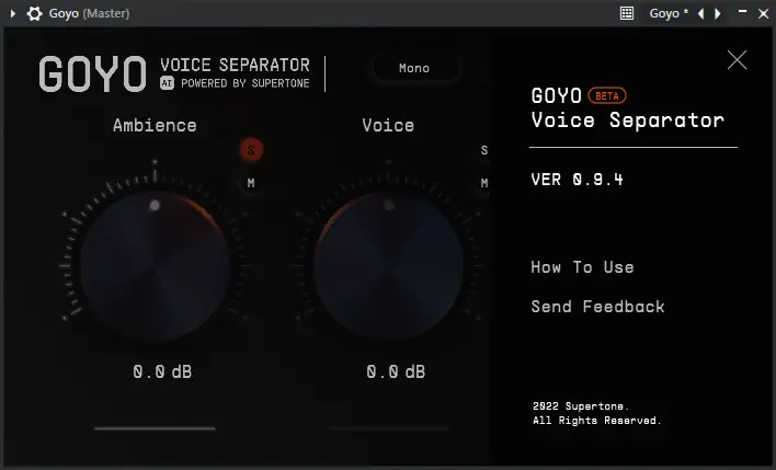Для начала работы достаточно загрузить плагин в аудиоредактор через стандартный интерфейс добавления эффектов. После установки GOYO доступен в списке доступных модулей под категорией vst. Пользователь может выбрать, какой из трёх каналов он хочет экспортировать или отключить: фон, голос или реверберацию. Регулировка параметров осуществляется с помощью ползунков, отвечающих за интенсивность фильтрации. Программа поддерживает режим реального времени, что позволяет слышать результат сразу после применения. Экспорт окончательного результата выполняется через функции сохранения проекта в основной DAW.