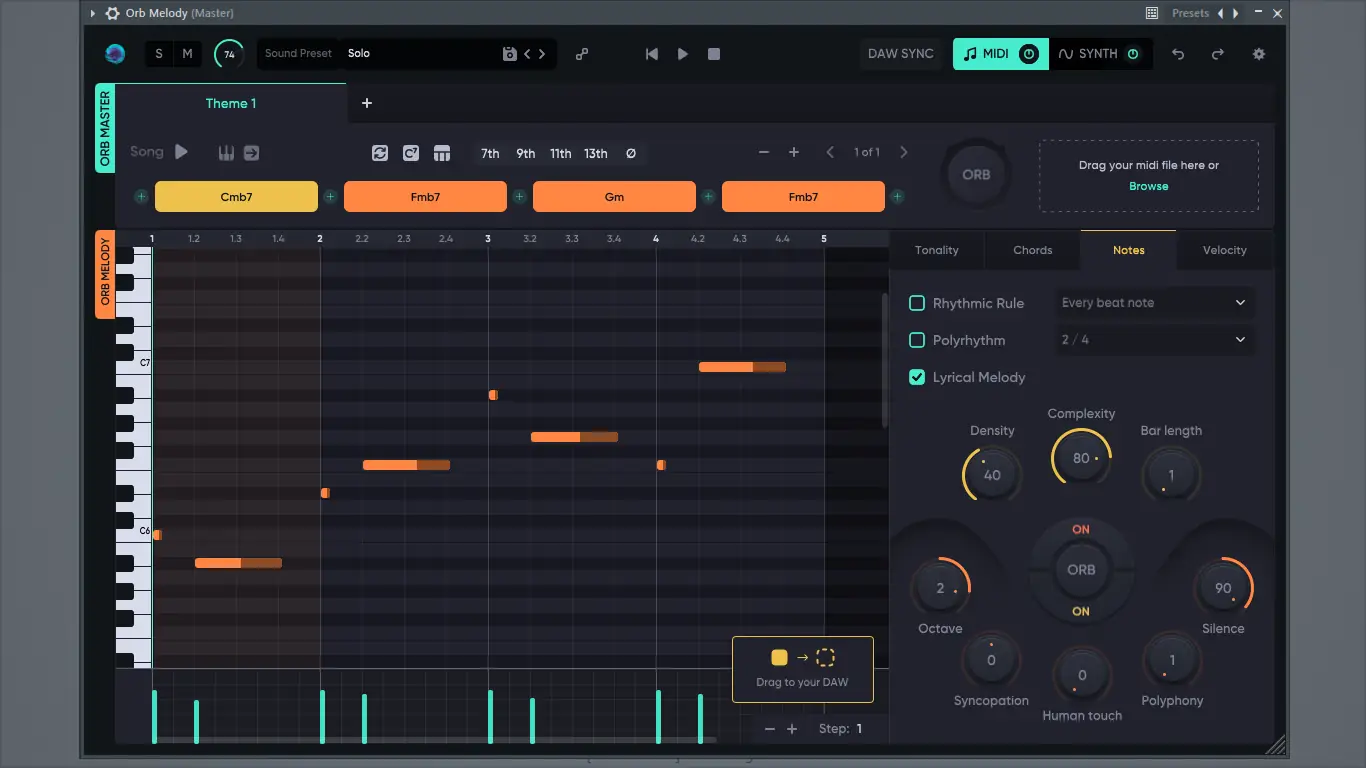 Плагины из ORB Producer Suite работают в виде VST, AU или AAX-модулей внутри цифровой аудиостудии. После установки и сканирования в DAW каждый модуль можно загрузить на MIDI-трек. Для запуска генерации достаточно выбрать базовую тональность и аккордовую последовательность, после чего активировать процесс нажатием кнопки. Полученные фразы можно модифицировать с помощью слайдеров, регулирующих плотность нот, ритмическую сложность, диапазон и другие параметры. Результат экспортируется как MIDI-данные для дальнейшего редактирования или применения с виртуальными инструментами.