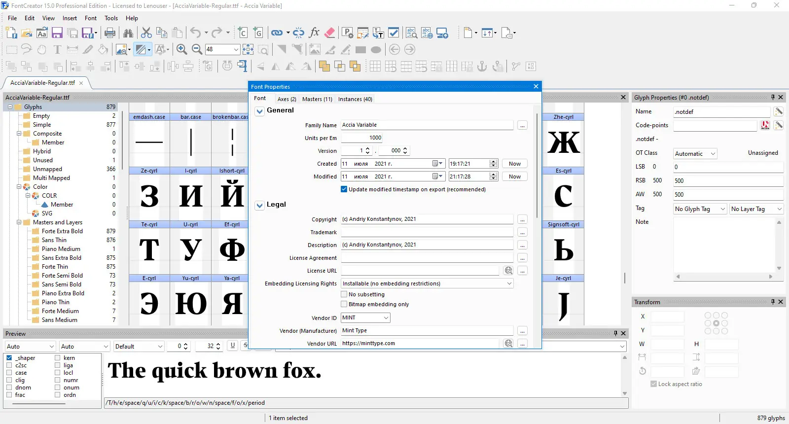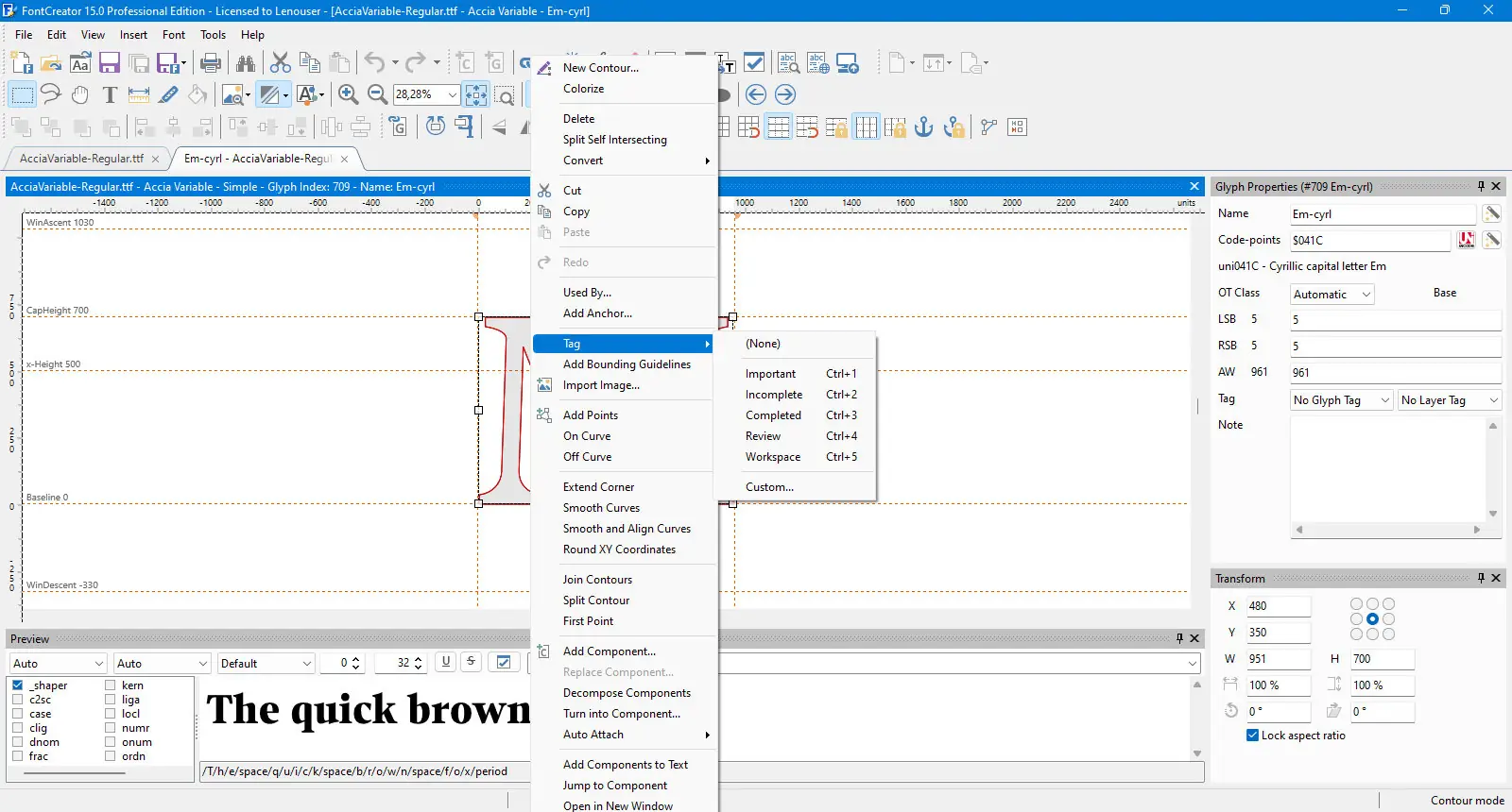 - Доступна возможность редактирования уже установленных шрифтов, включая исправление некорректного отображения символов и кернинговых пар.