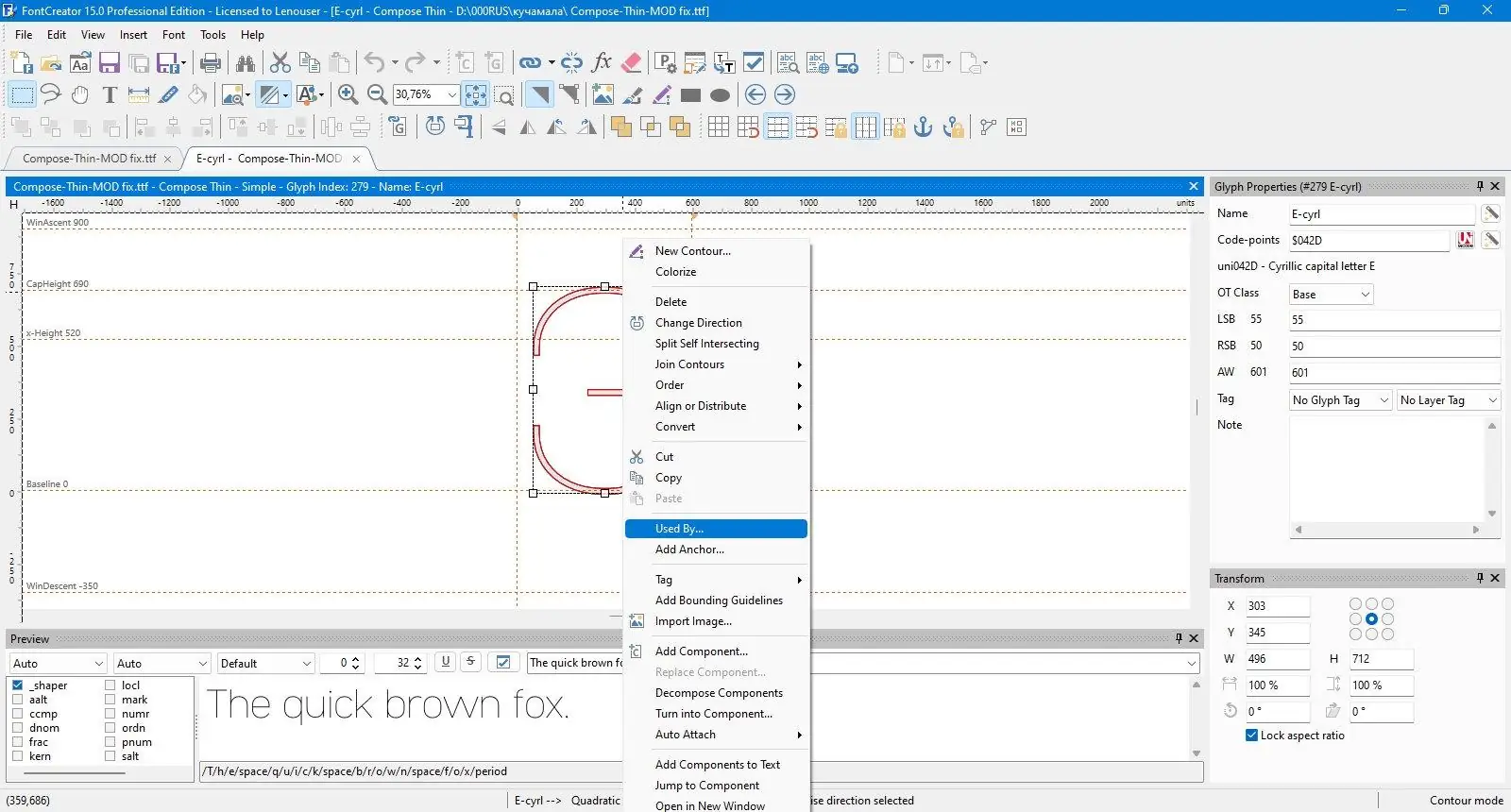 - Инструменты для оптимизации контуров и улучшения качества глифов