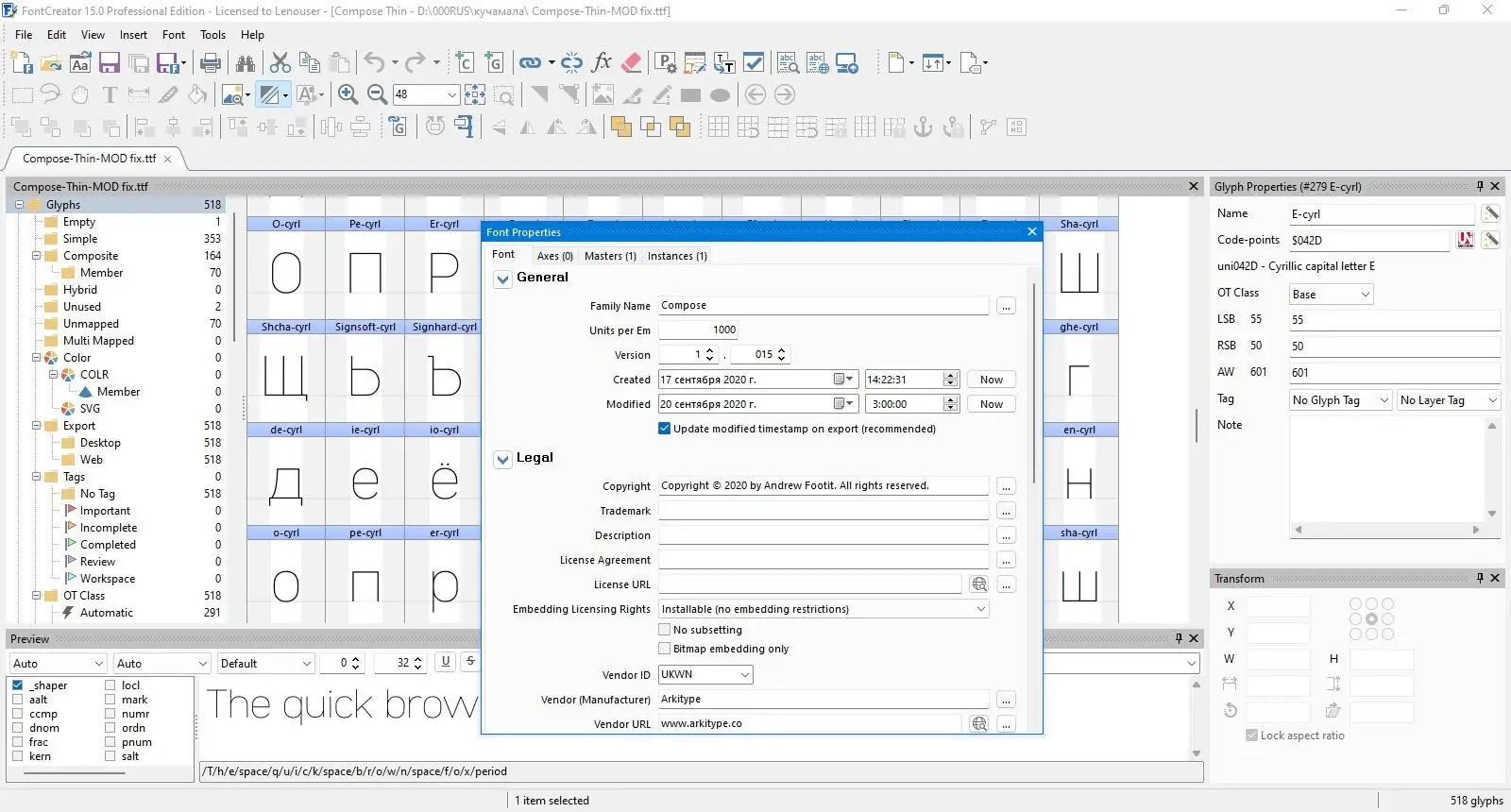 - Редактирование и обновление имен шрифтов и метаданных