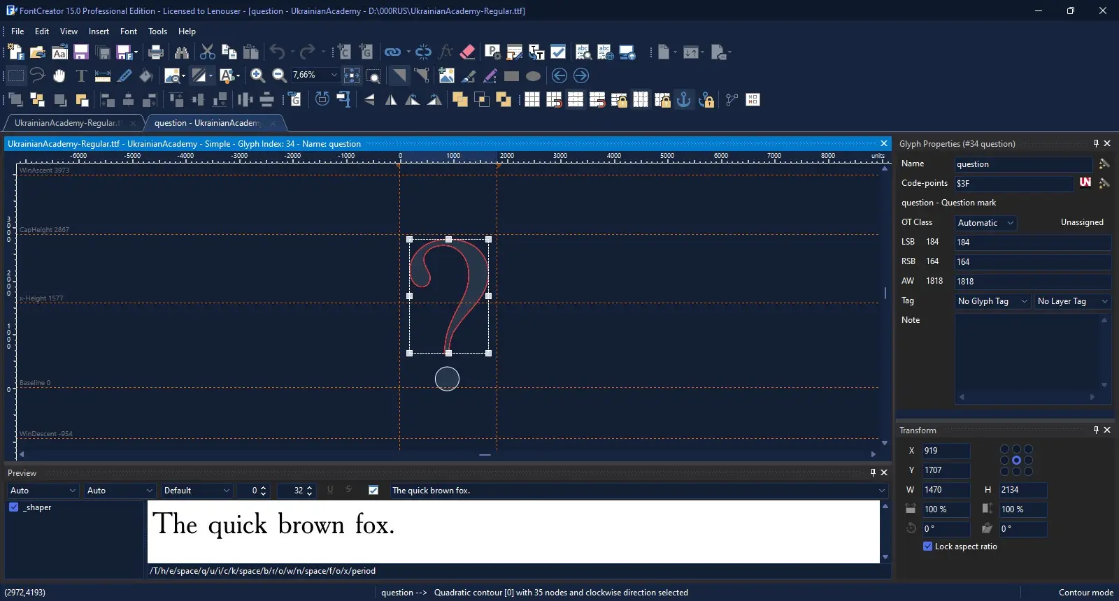 - Широкие возможности автоматизации: создание жирных версий, тонкое преобразование, генерация композитных глифов.