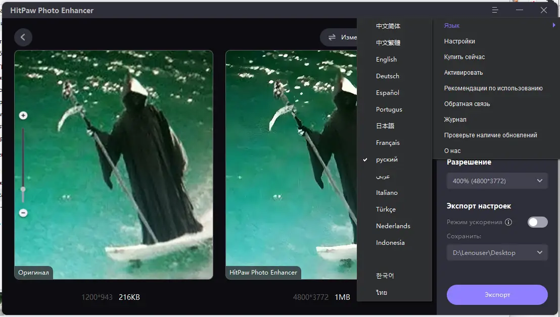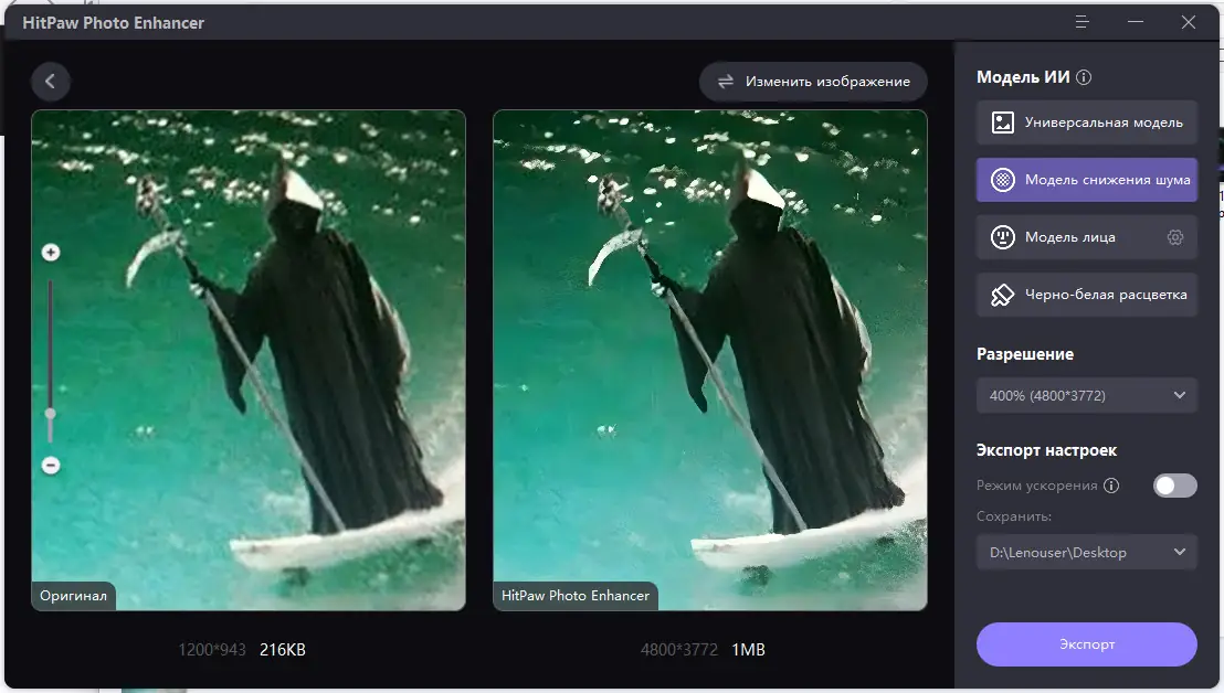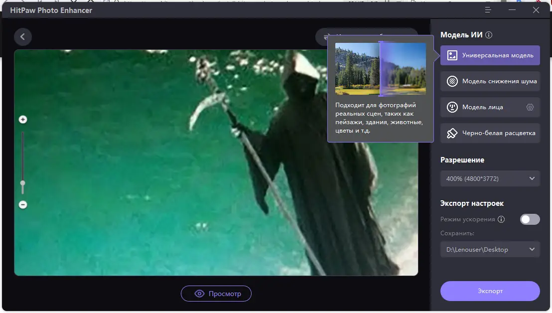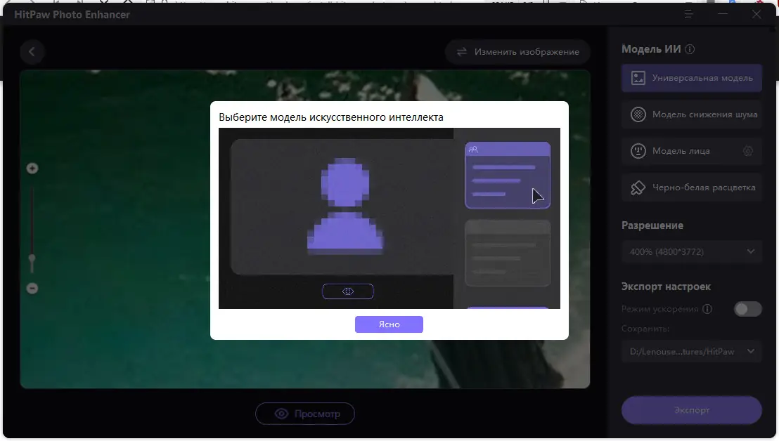 Работа с HitPaw Photo Enhancer