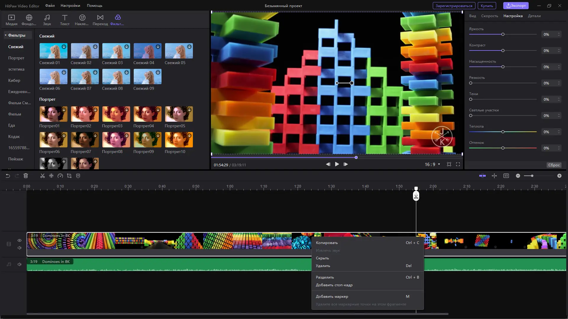 Работа с HitPaw Video Editor