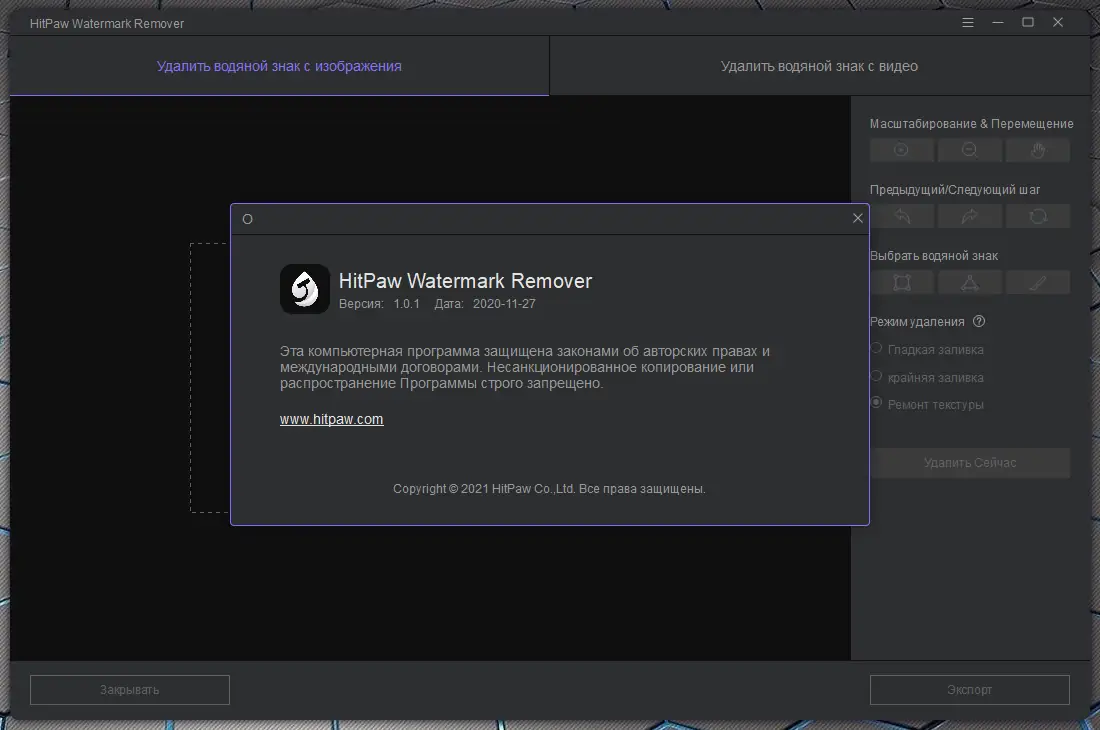 Работа с HitPaw Watermark Remover