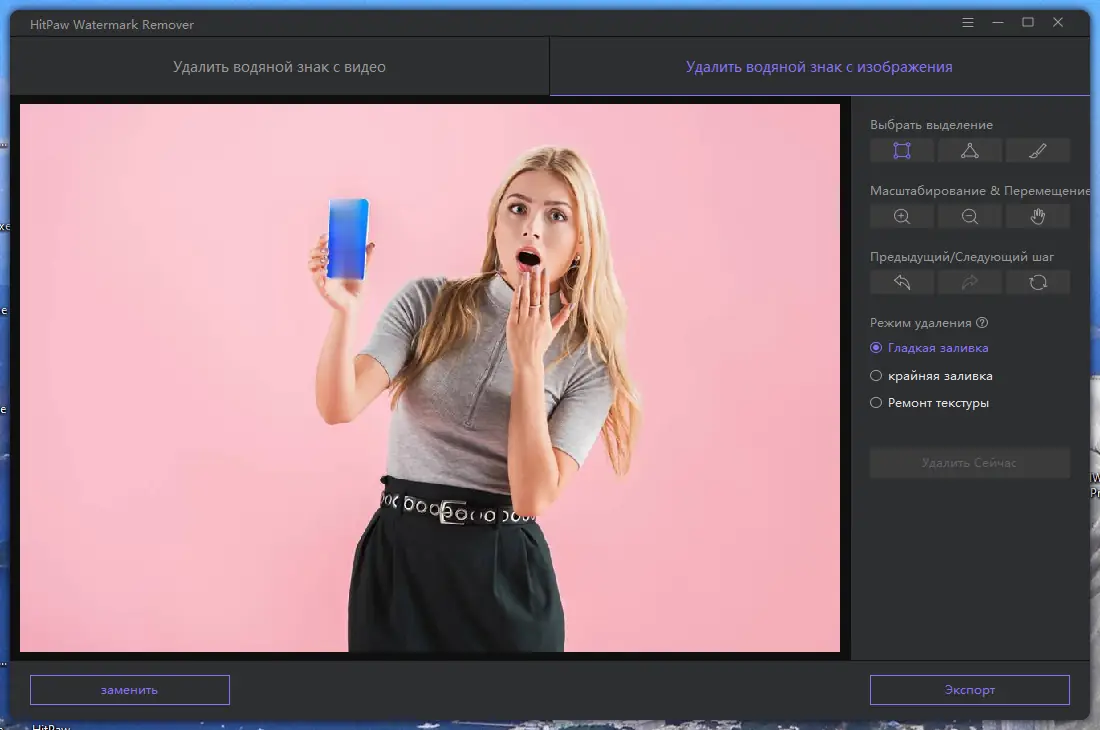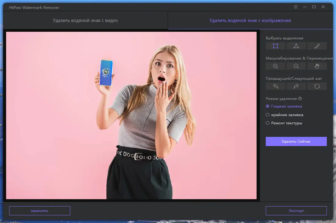 Работа с HitPaw Watermark Remover