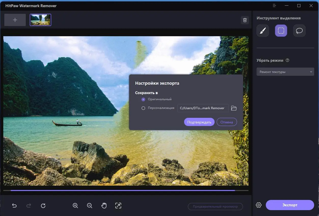 Использование приложения начинается с загрузки медиафайла через перетаскивание или выбор через проводник. После открытия изображения или запуска видео пользователь может масштабировать контент и точно выбрать область, подлежащую редактированию. Доступны инструменты прямоугольного, треугольного и свободного выделения, что позволяет гибко подходить к каждой задаче. После выделения ненужного элемента программа предлагает один из трёх методов удаления — выбор зависит от характера фона и сложности текстуры. В случае с видео процесс автоматизирован: выделение применяется к нужному фрагменту, и программа обрабатывает все кадры в заданном интервале. Поддерживаемые форматы охватывают большинство распространённых типов, включая JPEG, PNG, MP4, AVI, MOV и другие, что делает утилиту универсальной в использовании.