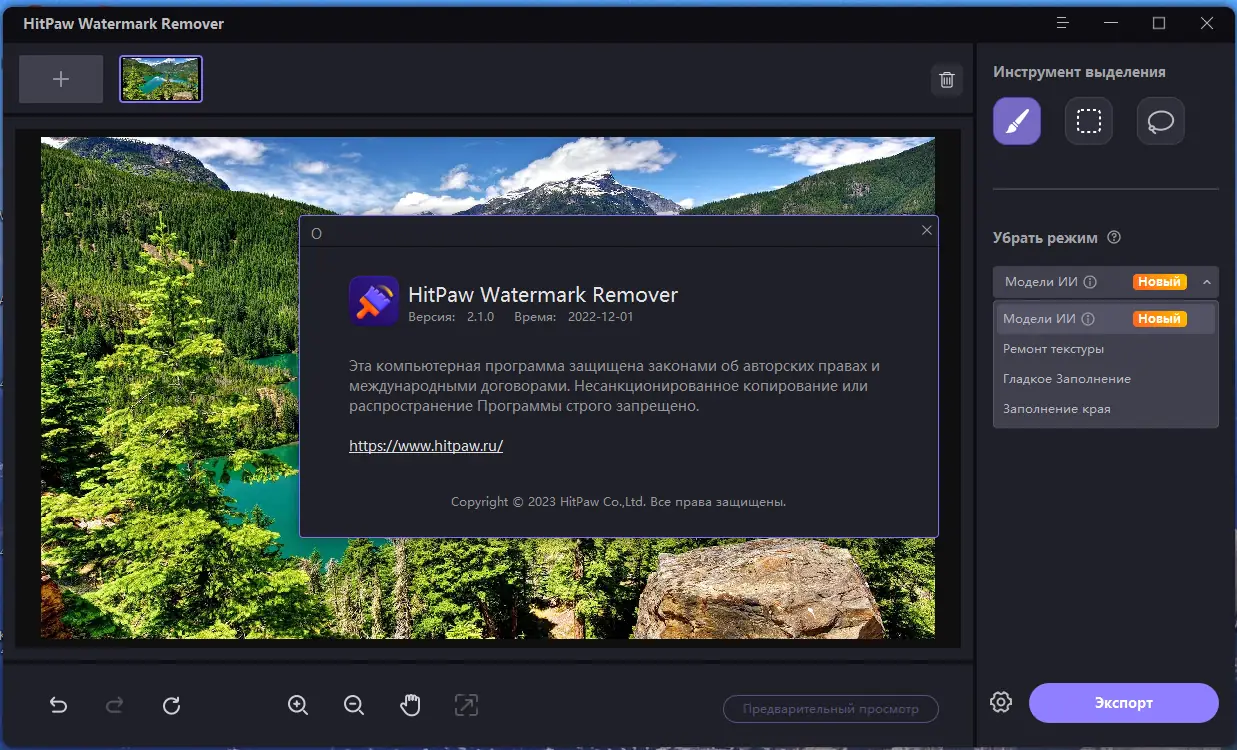 Работа с HitPaw Watermark Remover