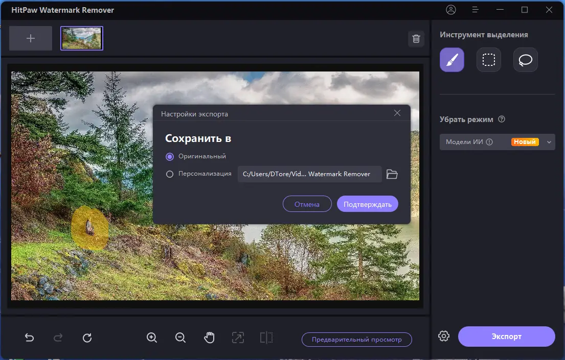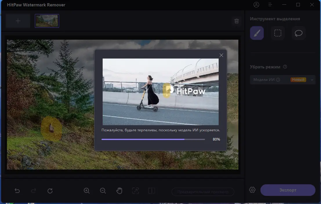 Работа с HitPaw Watermark Remover