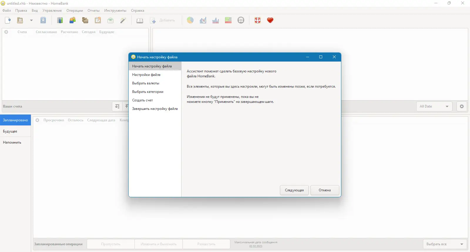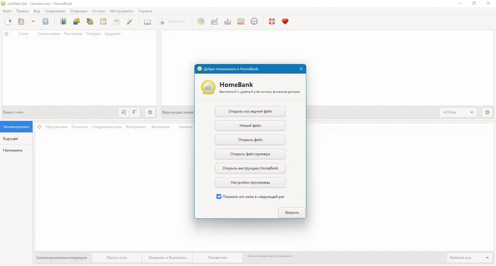 Работа с HomeBank