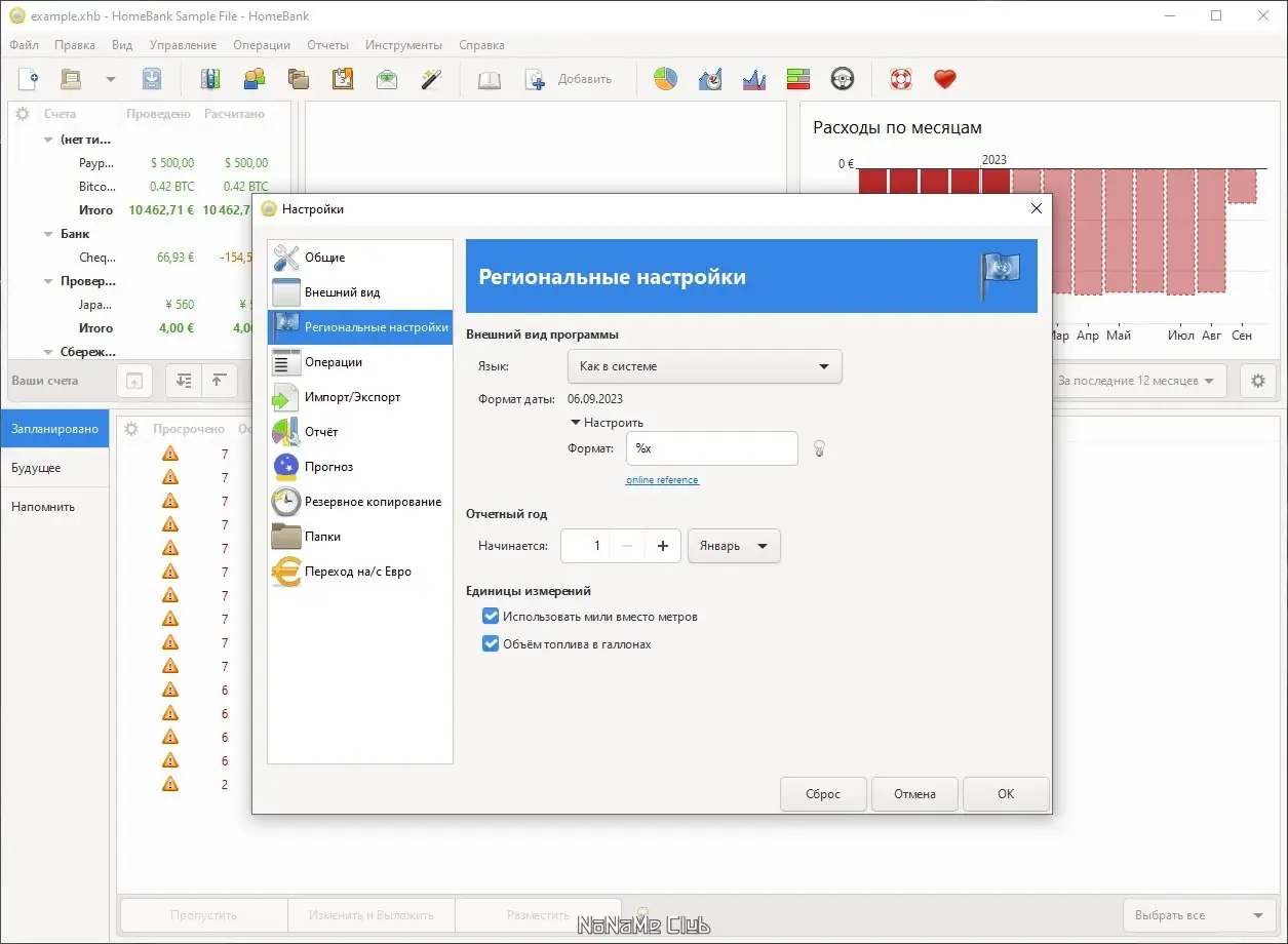 - Гибкие отчёты и диаграммы для анализа личного бюджета