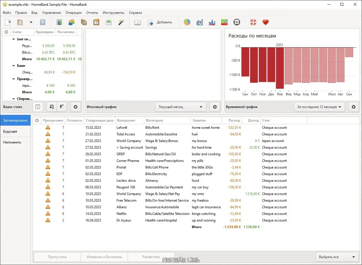 HomeBank — это удобное приложение для управления личным бюджетом, позволяющее вести учёт доходов и расходов, строить наглядные графики и анализировать финансовое поведение за любой период. Программа подходит для тех, кто стремится контролировать свои финансы, планировать траты и понимать структуру расходов. Благодаря интуитивному интерфейсу и гибким настройкам, HomeBank становится надёжным помощником в повседневном финансовом учёте.