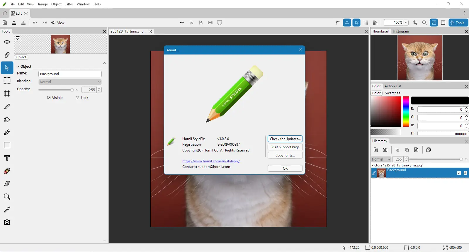 Hornil StylePix — это многофункциональный графический редактор, предназначенный для обработки и редактирования изображений. Программа сочетает в себе мощные инструменты профессионального уровня и простой интерфейс, что делает её подходящей как для новичков, так и для опытных пользователей. Она позволяет выполнять широкий спектр задач — от базовой коррекции фото до сложного рисования и работы со слоями.