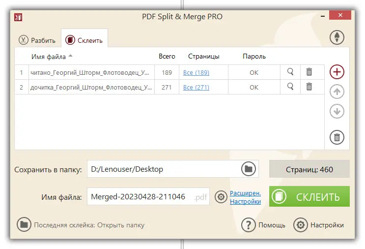 - Объединение PDF-файлов, включая те, что защищены паролем, в единый документ с сохранением структуры.