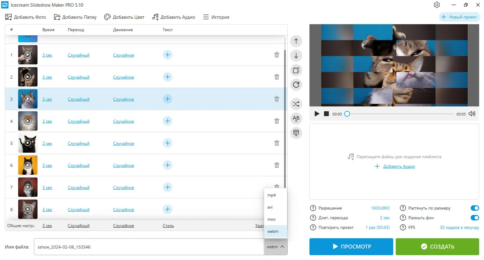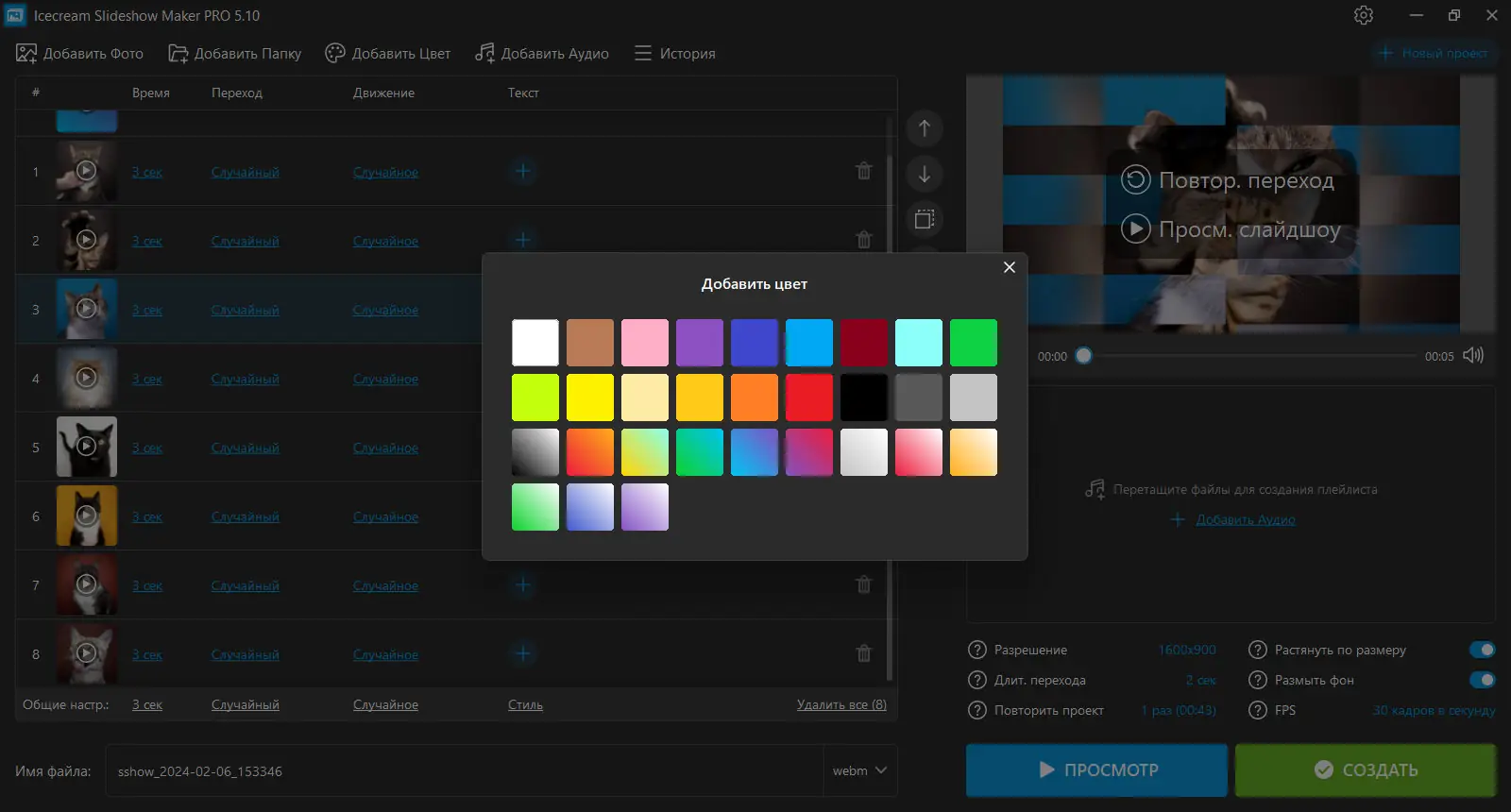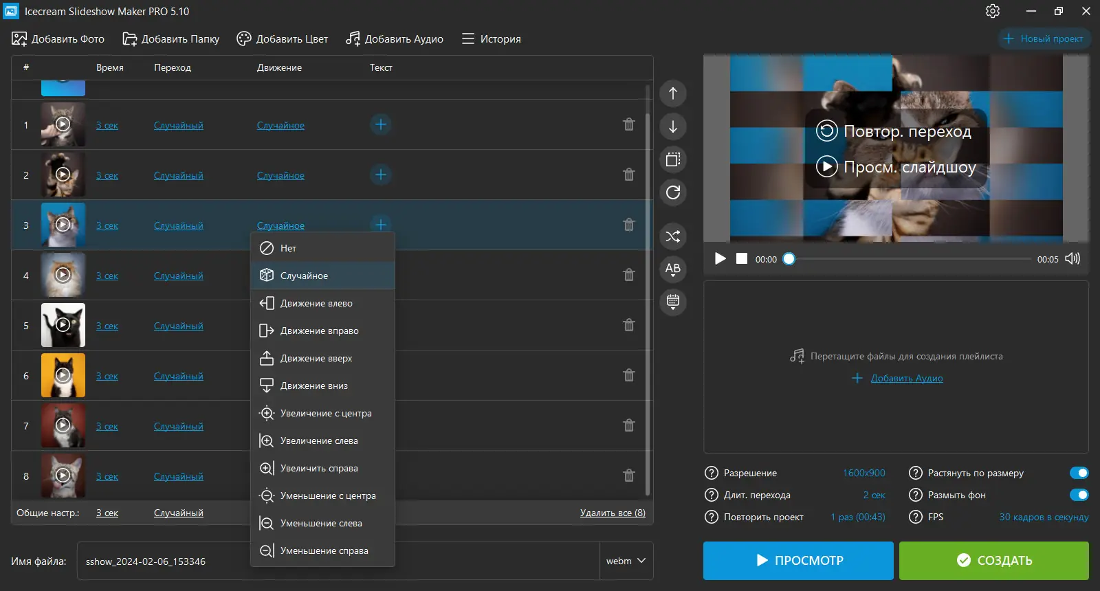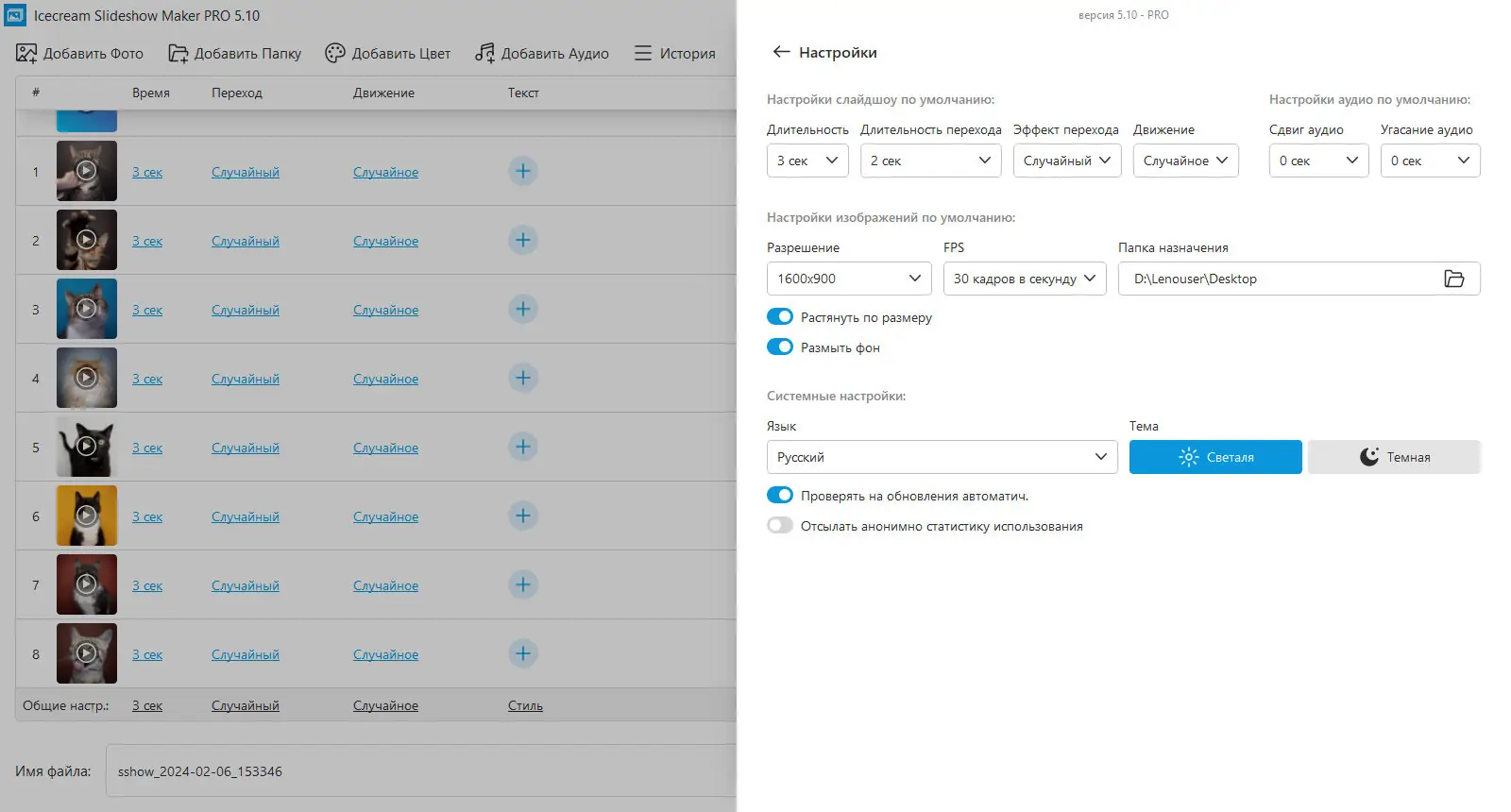Icecream Slideshow Maker — это удобное приложение для создания слайдшоу из фотографий с эффектами, музыкой и плавными переходами. Программа подходит как для новичков, так и для пользователей с минимальным опытом работы с видеоредакторами. С её помощью можно быстро превратить статичные снимки в динамичное видео в формате Full HD.