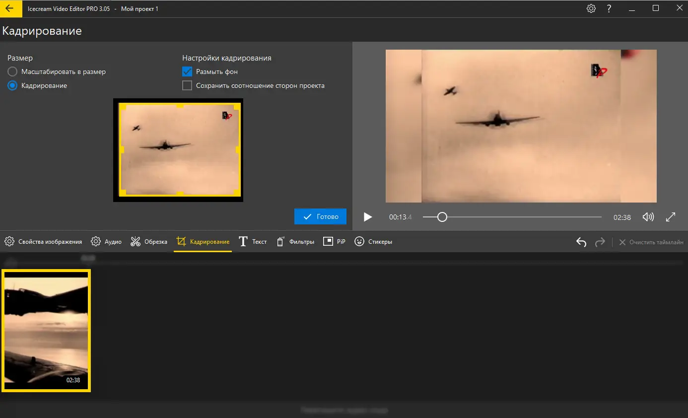 - Инструменты для обрезки, кадрирования, поворота и отражения видеофрагментов и изображений.