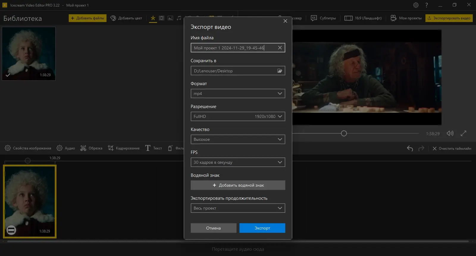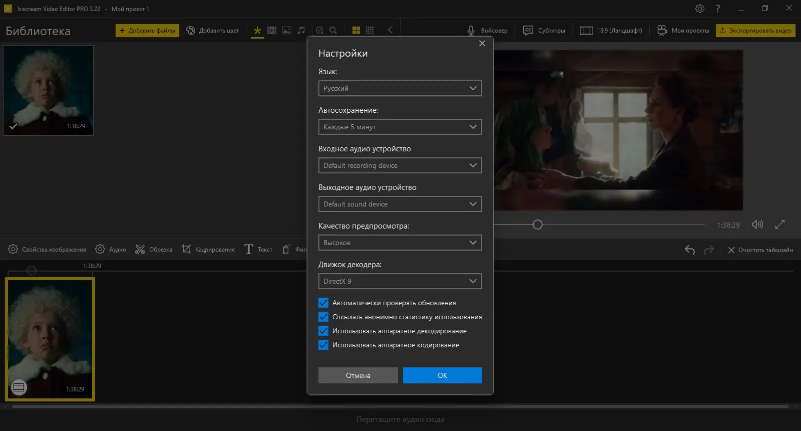 Icecream Video Editor предлагает сбалансированный функционал, подходящий для быстрого монтажа без перегрузки интерфейса. Он поддерживает экспорт в популярные форматы и интеграцию с облачными сервисами, такими как YouTube, Dropbox и Google Drive. При этом программа остаётся доступной по системным требованиям и не нагружает слабые компьютеры.