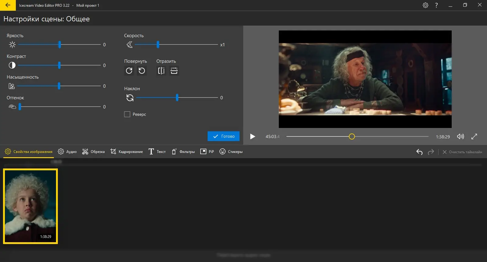 - Функция изменения скорости воспроизведения помогает создавать эффекты замедления или ускорения действия.