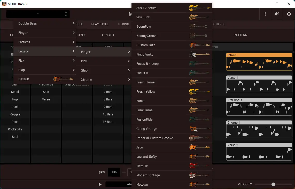 Работа с программой начинается с выбора одного из 22 доступных инструментов, после чего можно тонко настраивать его характеристики. Пользователь может изменять количество струн, тип обмотки, длину мензуры, возраст струн и даже убирать лады, превращая стандартный бас в безладовый. Стиль игры задаётся через MIDI: выбирается перебор пальцами, слэп, игра медиатором или приглушение. Каждый стиль влияет на тембр и динамику, а параметры вибрато, слайдов и шума при игре можно контролировать в реальном времени. Грувы подбираются по жанру, тактовому размеру и структуре композиции, что ускоряет процесс создания аранжировки. Сигнал можно направлять в цепочку эффектов и усилителей, включая модели из AmpliTube, либо экспортировать в DAW для дальнейшей обработки.