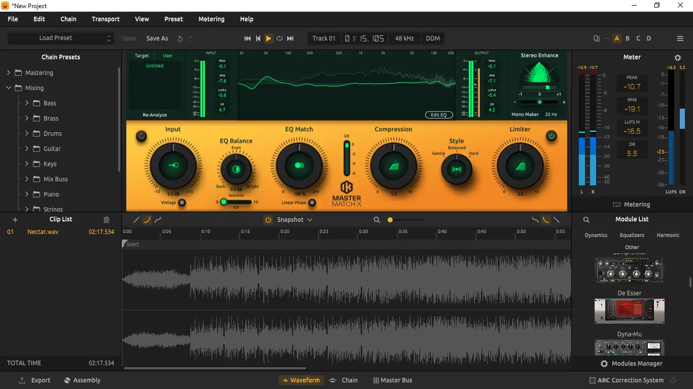 - Новые разработки включают Master Match X, Channel Strip X, Bass ONE и другие модули, расширяющие возможности по обработке сигнала.
