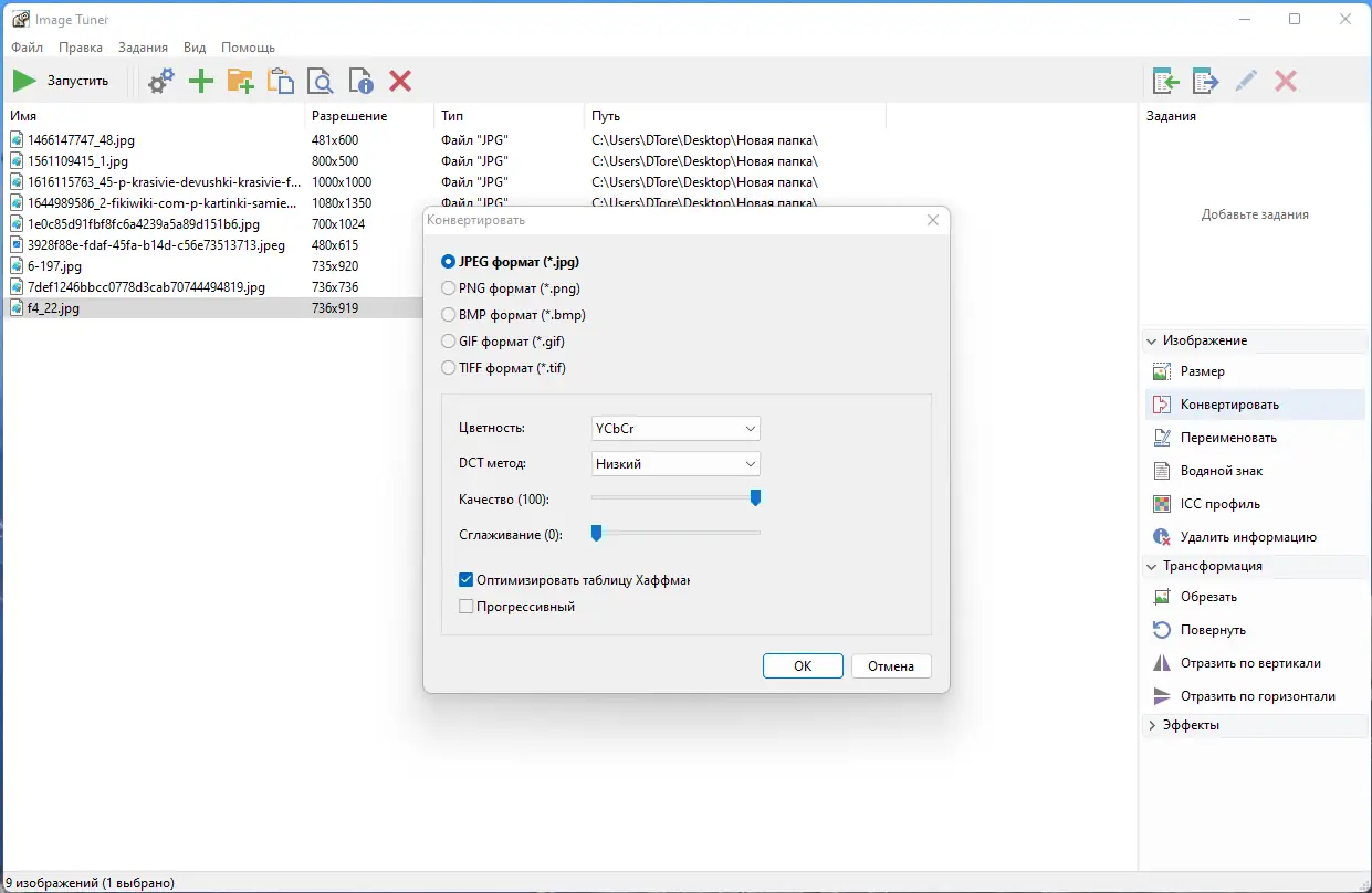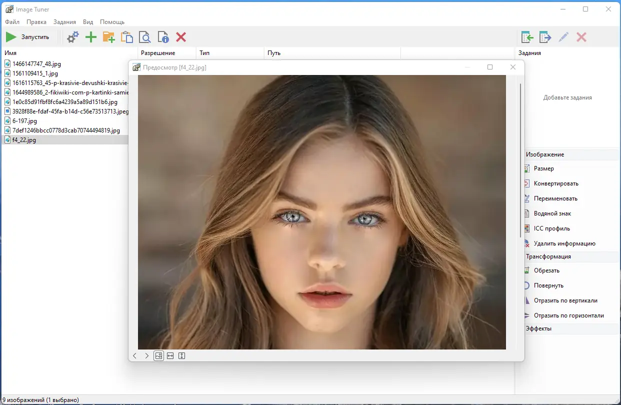 Image Tuner — это компактная утилита для пакетной обработки изображений, позволяющая изменять размеры, конвертировать форматы, добавлять водяные знаки и выполнять другие операции с цифровыми фотографиями. Программа поддерживает широкий спектр графических форматов и предлагает инструменты для быстрой настройки параметров изображений. Подходит как для новичков, так и для пользователей, которым требуется регулярно обрабатывать большое количество снимков.