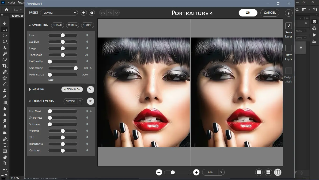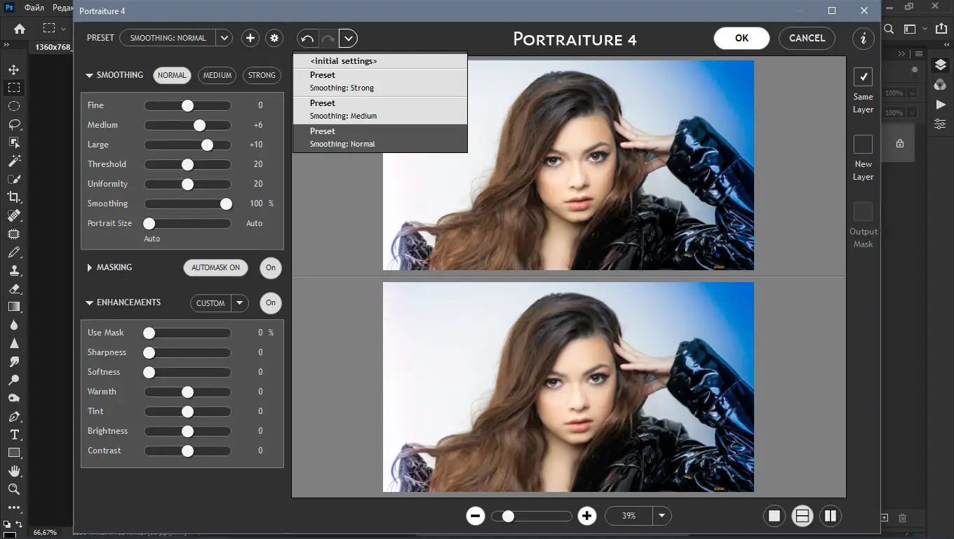 Использование плагина начинается с его запуска через меню фильтров в Adobe Photoshop или в модуле редактирования Lightroom. После активации интерфейс открывает доступ к основным параметрам: силе воздействия, степени смягчения, детализации и цветокоррекции. Пользователь может полагаться на автоматическую маску, которая выделяет кожу по тону, или вручную настроить диапазон с помощью ползунков для более точного контроля. В окне предпросмотра отображаются изменения в реальном времени, что упрощает выбор оптимальных настроек. Дополнительно доступны режимы сравнения «до и после», что помогает оценить эффективность обработки. Сохранённые пресеты позволяют быстро применять проверенные конфигурации к новым снимкам.