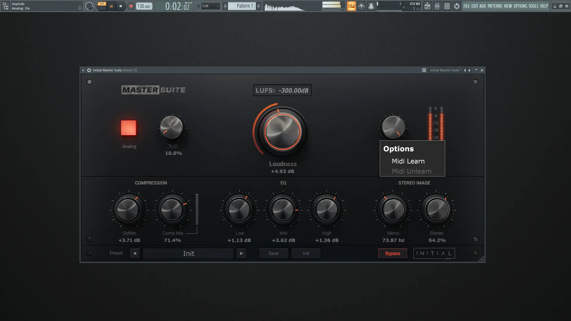 Initial Audio Master Suite — это компактный, но мощный инструмент для мастеринга, разработанный для музыкантов, продюсеров и звукорежиссёров, стремящихся придать трекам профессиональную громкость и чистоту. Программа сочетает в себе эквалайзер, стерео-контроль, ограничитель и измеритель LUFS, обеспечивая быстрый путь к современному звучанию. Благодаря интуитивному интерфейсу и интеллектуальному алгоритму, мастеринг становится доступным даже для новичков.