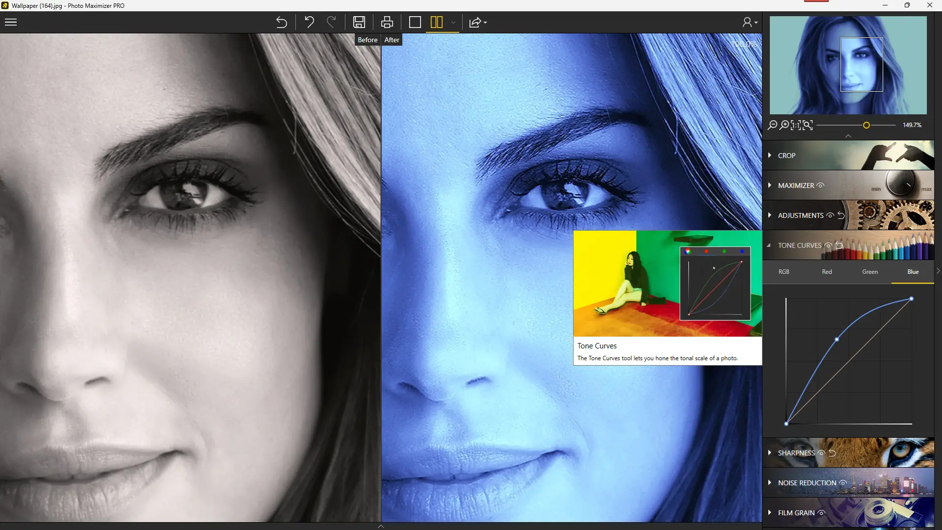 InPixio Photo Maximizer — это специализированный инструмент для увеличения цифровых фотографий с сохранением высокой детализации и четкости изображения. Программа использует передовые алгоритмы обработки, позволяя увеличивать снимки до 1000% без характерных артефактов, таких как размытость или пикселизация. Подходит как для домашнего использования, так и для профессиональной подготовки изображений к печати или публикации.