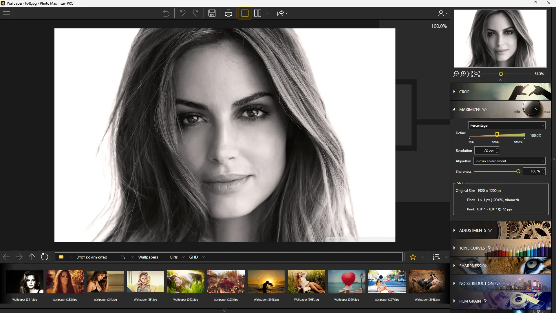 Интерфейс программы отличается простотой и интуитивной навигацией, что позволяет начать работу даже новичку. После запуска достаточно загрузить изображение, выбрать желаемый уровень масштабирования и активировать режим предварительного просмотра. Система отображает изменения в реальном времени, позволяя корректировать параметры и сравнивать оригинальное и увеличенное фото. После настройки применяются фильтры улучшения качества, после чего файл можно сохранить в выбранном формате с максимальным разрешением.